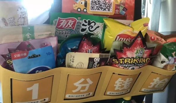 上海出租車上驚現(xiàn)“便利店”。后排座椅上擺放著簡易貨架,零食、飲料、口香糖。首單只要1分錢就能買到蝦條、礦泉水各種小零食。