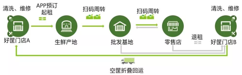 一般果蔬批發商擁有數千至數萬個周轉筐,然而這種傳統塑料筐存在很多問題,比如占用大量購買資金、倉儲成本高、季節性閑置嚴重、閑置筐沒有買賣與租賃渠道。針對這些問題,好筐共享搭建了一個在線服務平臺,提供周轉筐買賣、租賃和共享業務。