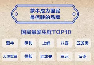 數(shù)據(jù)顯示,國民最愛的生鮮品牌TOP5分別是:蒙牛、伊利、上鮮、八喜、五芳齋。