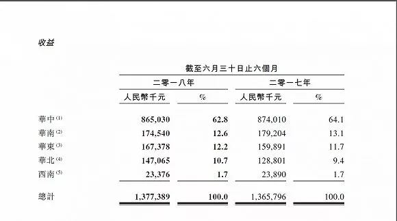而截止2018年6月30日止6個月,華北地區取得顯著增長,其收益貢獻較2017年同期增加在14%左右。