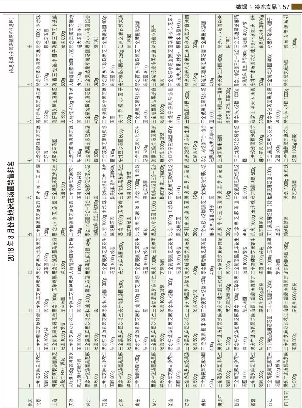 來(lái)源: 冷凍食品網(wǎng) 發(fā)布者:編輯▼2018年8月份各地速凍湯圓銷售排名