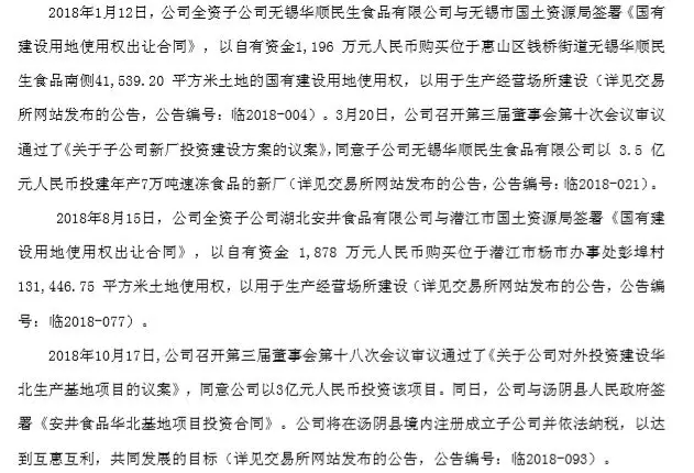 安井的利潤為什么高呢?安井第三季度報顯示,公司利潤延續了今年以來顯著高于收入增長的趨勢,原因是公司在產能存在缺口的情況下,調整生產和產品結構所致。為逐步緩解目前較大的產能供需缺口,提高市場占有率,更好發揮規模經濟效應和銷地產的成本優勢,安井食品在報告期至今開展了一系列投資擴產計劃,具體如下: