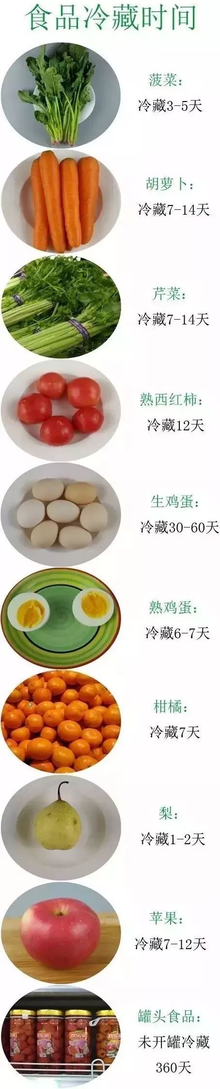 經(jīng)過上圖展示我們可以看出,一般果蔬類,蛋類以及奶類食物冷藏期都比較短,少則1~2天,多則7~14天,所以買來(lái)之后應(yīng)盡快食用。經(jīng)過高溫殺菌處理過的罐頭類食品一般保存時(shí)間較長(zhǎng),可達(dá)360天,像雞肉、牛肉、肉排、魚類等肉制品冷藏期普遍較短,但冷凍條件下都比較穩(wěn)定,保存時(shí)間甚至能長(zhǎng)達(dá)360天。