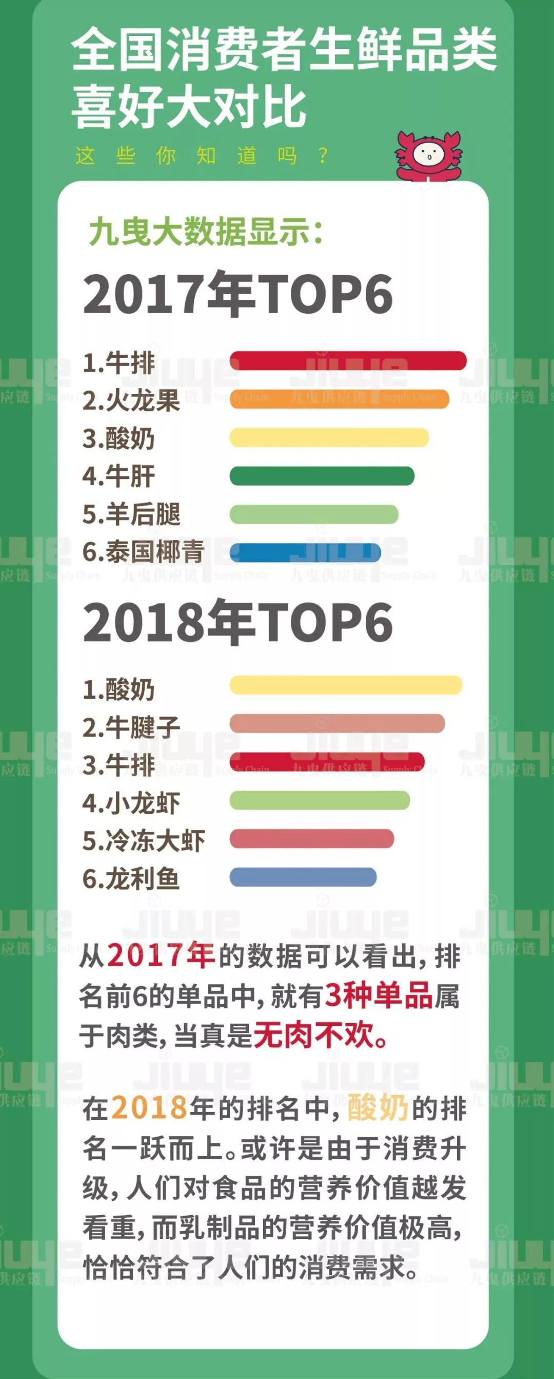 2017—2018生鮮趣味大數據新鮮出爐啦!令人不可思議的是,乳制品竟打敗牛排和冷凍面食成品類領頭羊……