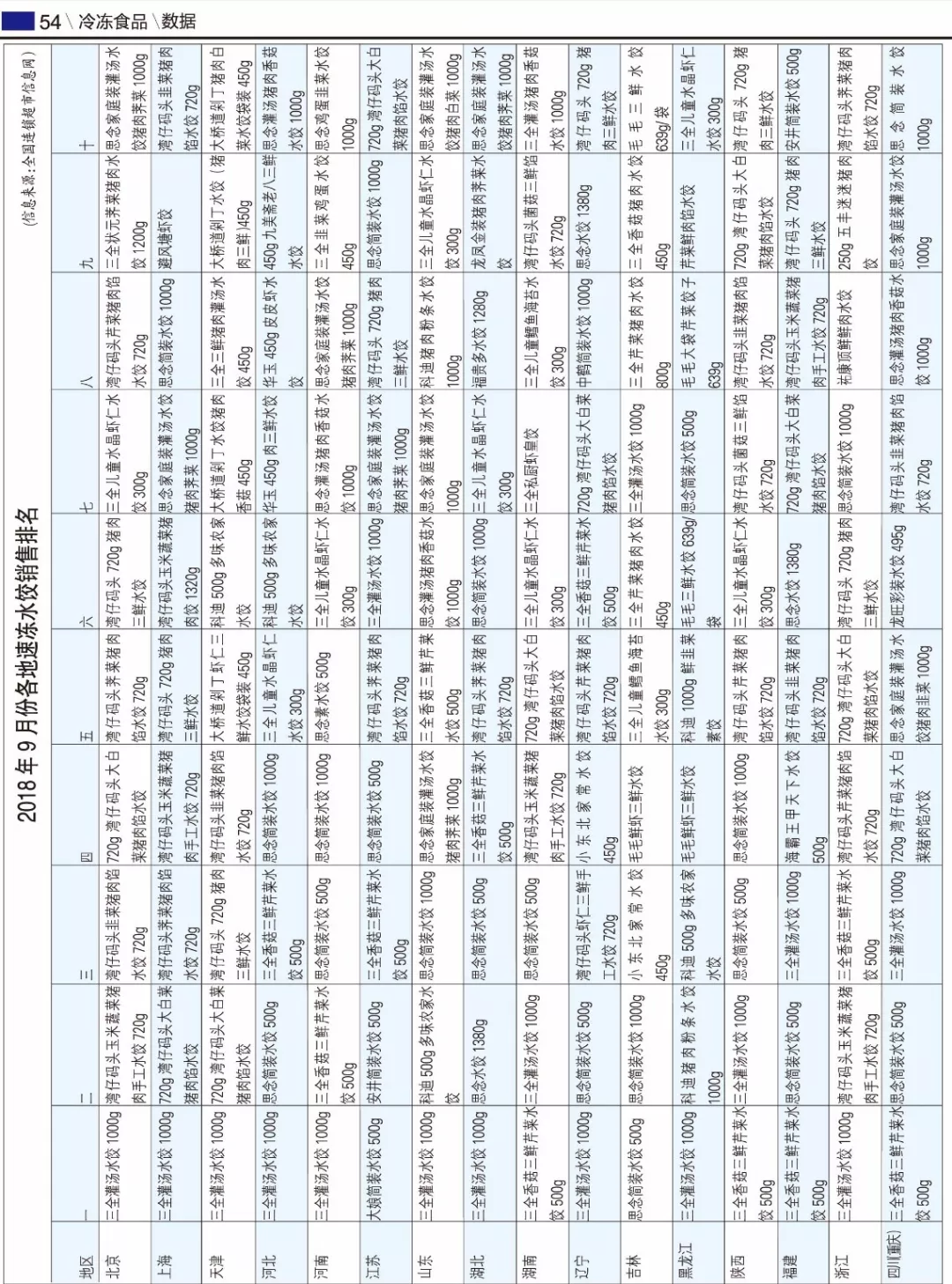 來源: 冷凍食品網 發布者:編輯今年9月份各地速凍水餃銷售排名揭曉,從中我們能看出一些市場特點:
