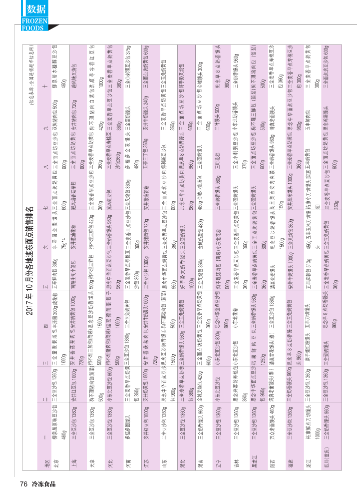 來(lái)源: 冷凍食品網(wǎng) 發(fā)布者:編輯▼2017年11月份各地速凍面點(diǎn)銷售排名