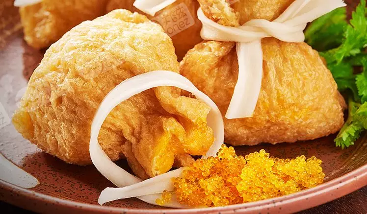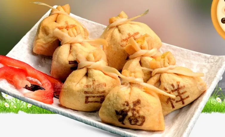 金黃色的小袋子裝得鼓鼓囊囊,有的還會印上“吉”“祥”“如”“意”“福”等字樣。袋口被綁著,里面裝了啥誰也不知道,一口咬下去,鮮美的滋味瞬間給人帶來巨大驚喜。它的功能性也非常強,可用于火鍋、關東煮、麻辣燙、高端餐廳配菜等。