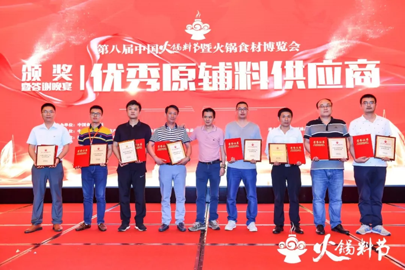 頒獎儀式在第八屆中國火鍋料節晚宴現場隆重舉行。現場燈光璀璨,掌聲雷動,為獲獎者加冕。