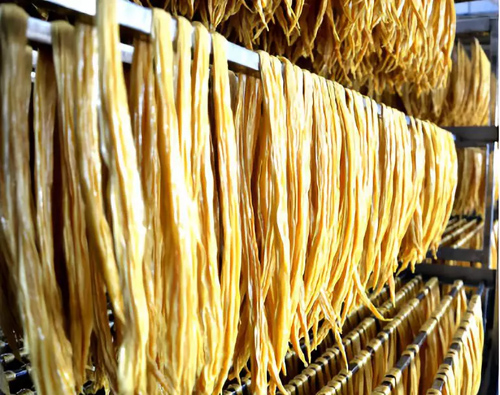 作為一款傳承上千年的美食,腐竹產業已經比較成熟,形成了廣西賀州、廣東新橋、福建三明、江西高安等多個腐竹生產基地。其中河南省許昌市河街鄉素有“腐竹之鄉”之稱,是全國最大的豆制品生產集散地之一。