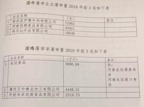生豬屠宰量在5萬頭以上企業有89家,10萬頭以上企業60家,20萬頭以上企業28家,100萬頭以上企業3家,分別是漯河雙匯、鄭州雙匯和龍大牧原。據統計,2018年從外省調進生豬81.14萬頭,其中山西44.76萬頭、湖北16.11萬頭、河北9.35萬頭、山東7.18萬頭。