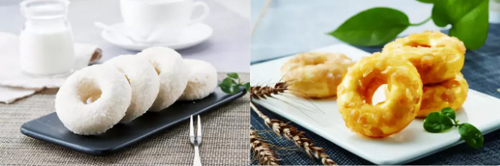 這款甜甜圈包括椰香味和南瓜味兩個口味。兩款產品在工廠中通過蒸制完成熟化,客戶使用時,只需簡單復蒸或者油炸即可。而且,“蒸”的甜甜圈,鎖定了最大的賣點“美味還健康”。