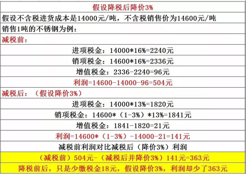 今年制造業增值稅由16%的稅率降至13%,客戶再次借機降價3%,下面讓我們來好好算算: