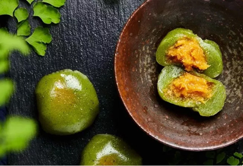 青團,江南特色小吃,因多在清明時節食用,又稱清明團子、艾米果等。用艾草汁拌糯米粉,包裹豆沙或蓮蓉餡兒,不甜不膩,有濃郁的艾香味。