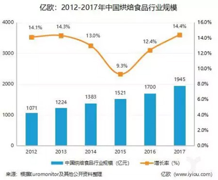 有大數(shù)據(jù)為證。2012—2017年,五年間,我國烘焙產(chǎn)品的銷售額已由1071.02億元增長到1944.79億元。