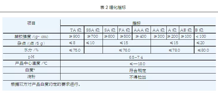 第三,魚糜新國標對魚糜理化標準的規定比較寬松,主要表現在魚糜水分含量和雜點數上。比如A、AA級魚糜的水分含量不超過78%,雜點數不高于15個。而實際生產中,AA級魚糜的水分一般要控制在76%左右,A級魚糜水分不超過77%。
