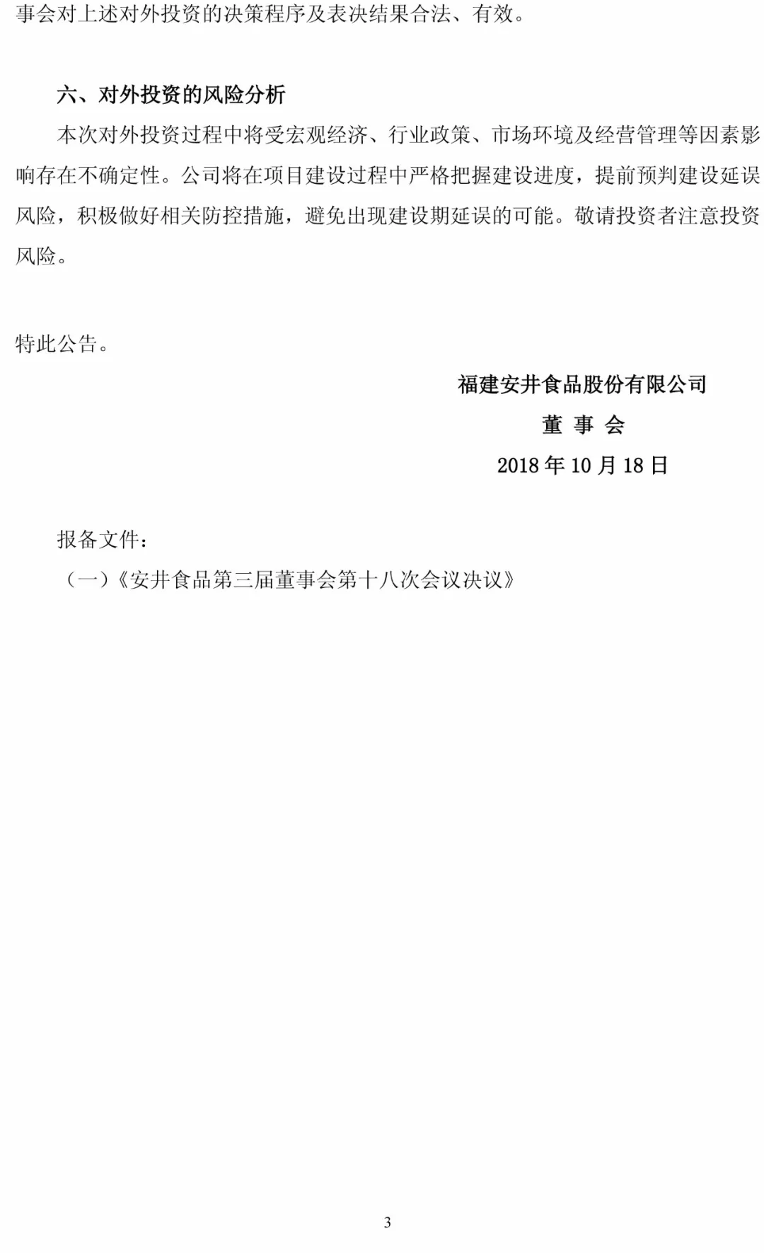 10月17日,安井食品召開第三屆董事會第十八次會議,審議通過了《關于公司對外投資建設華北生產基地項目的議案》,同意公司以3億元人民幣投資該項目。同日,公司與湯陰縣人民政府簽署《安井食品華北基地項目投資合同》。