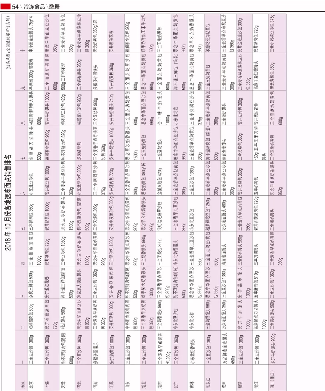 來源: 冷凍食品網 發布者:編輯2018年10月份各地速凍面點銷售排名揭曉: