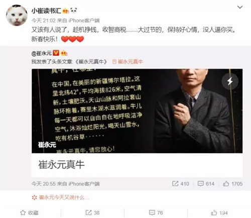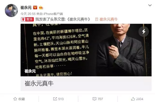 據了解,1月18日晚上,崔永元在微博上發了一篇長文,名為《崔永元真牛》,沒猜錯,崔老師又要賣牛肉了,一個崔永元真面,一個崔永元真牛,不得不說崔老師取名字很有水平。