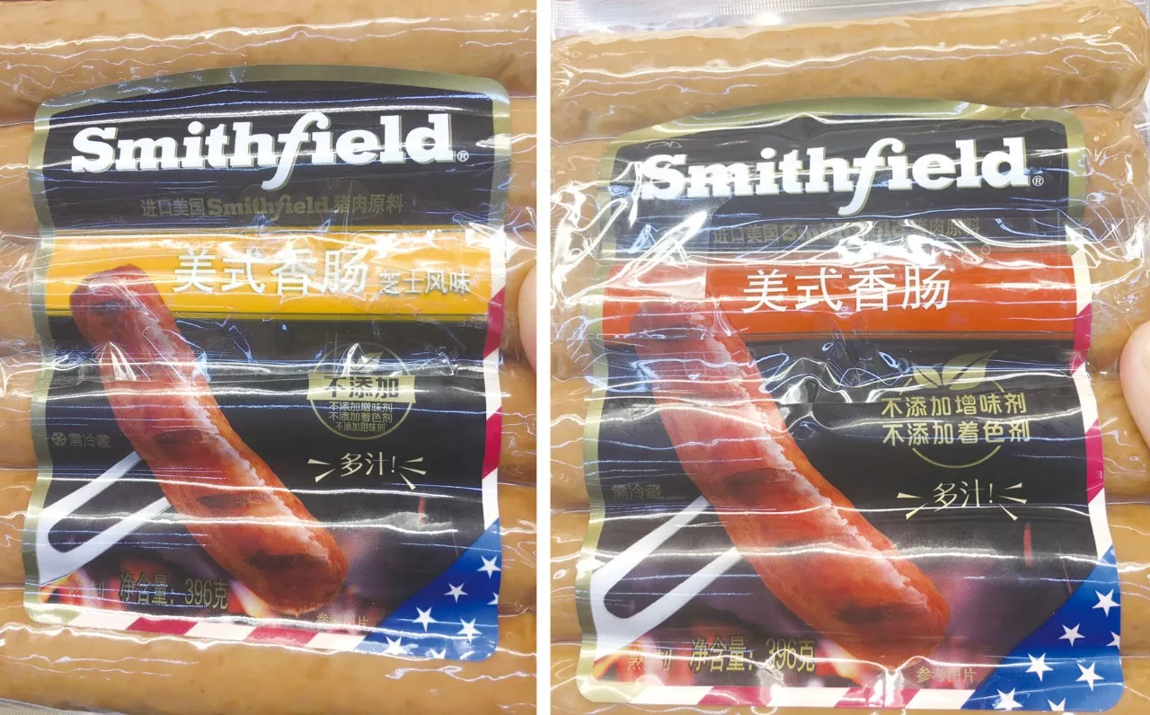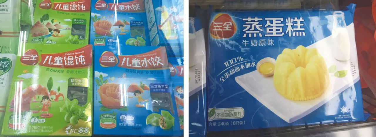 再看我們關注最多的速凍食品,記者發(fā)現“不添加”字眼多存在于一些大品牌產品中,如雙匯、三全和灣仔碼頭,看看它們都是如何標注的。