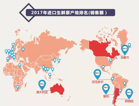 從生鮮產地來看,“尋鮮”走向國際,生鮮消費更加具有國際范兒。隨著人民生活水平提高,對于進口生鮮的消費表現得更加明顯。
