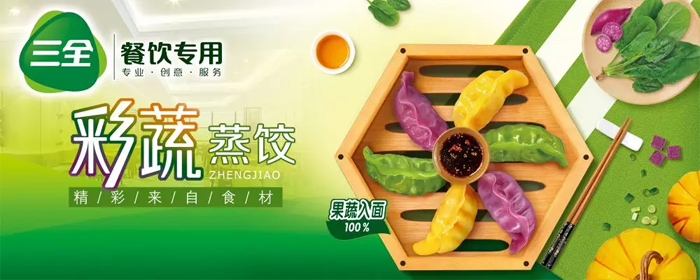 至于彩蔬蒸餃,則以菠菜、南瓜和紫薯100%果蔬入面賦予普通面粉新的生命力,也為消費者呈現(xiàn)美妙的視覺享受。